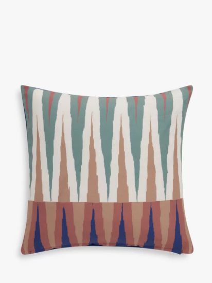 This patterned cushion has a water-repellent coating and is suitable for outdoor use. However, we recommend that you store it in a dry place indoors when not in use.