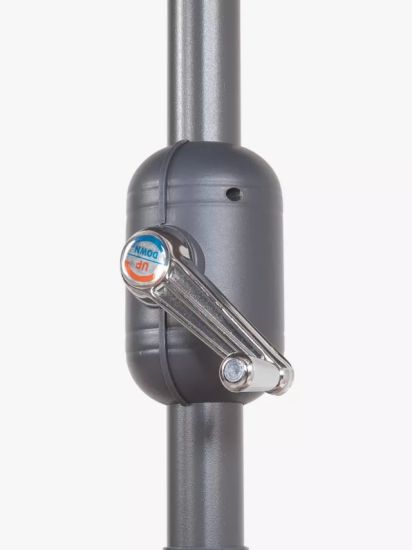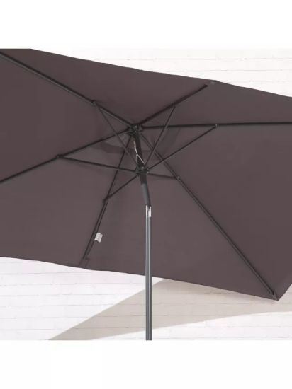 Made with a sleek powder-coated charcoal grey steel frame and six sturdy steel ribs, this parasol combines durability and elegance. The 160g/m2 canopy provides wide coverage, while vents enhance airflow to keep you cool on hot summer days. Use the tilt mechanism to control shade.